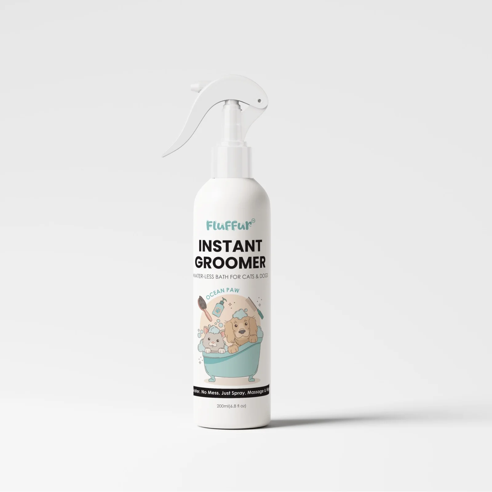 Fluffur Instant Groomer is the perfect waterless bath solution for cats and dogs. Specially formulated to clean, refresh, and deodorize your pet’s coat without the need for traditional bathing, it makes grooming simple and stress-free. With gentle ingredients and a fresh scent, it ensures your pets stay clean, shiny, and comfortable all day.