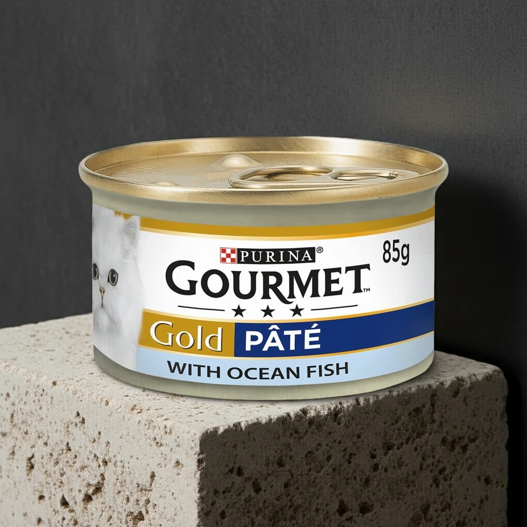 Give your cat a refined meal with Purina Gourmet Gold Pâté with Ocean Fish.