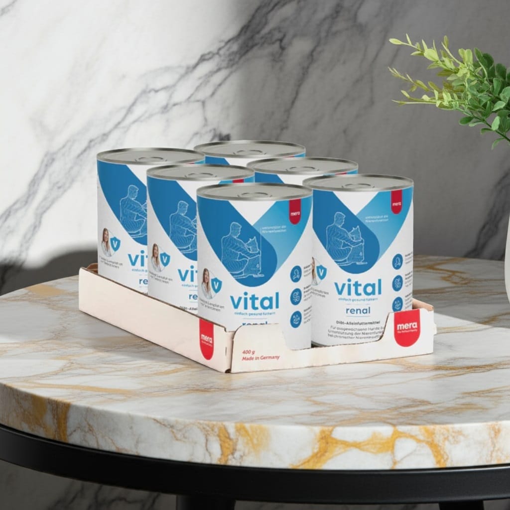 Support your dog’s kidney health with Mera Vital Dog Renal Wet Food. Specially formulated for dogs with renal insufficiency. This high-premium diet relieves kidney strain. It promotes a carefree life for your furry friend.