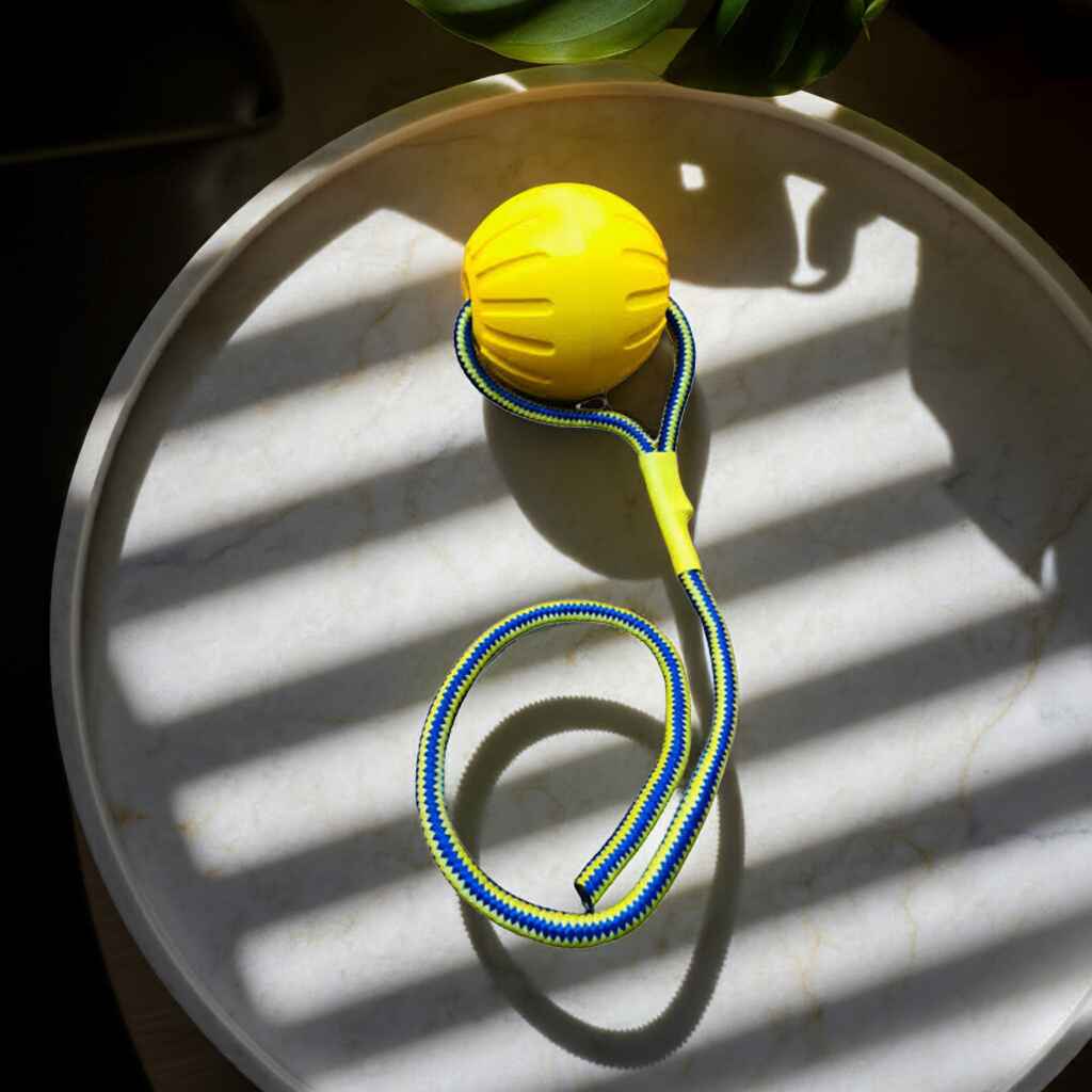 • The Playing Toy Ball for Pets with rope is the perfect solution!